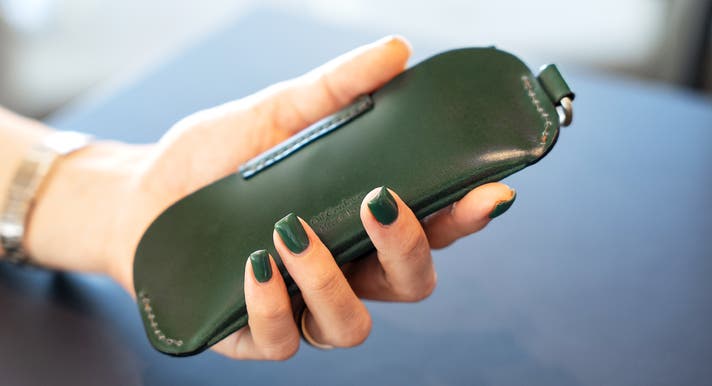 身にまとい、持ち歩くからこそ1番こだわったサイズ。大きなメガネケースを首からかけるとどうしてもカッコ悪いので、首から下げても、カバンに取り付けても主張しないサイズに仕上げました。