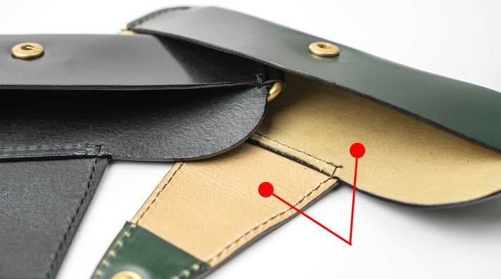 生地を使っていないので、そのままでは革の繊維がついてしまいます。革の繊維がつかないように、革の裏面には毛羽立ちの抑え処理を行いツルっとした仕上げにしています。