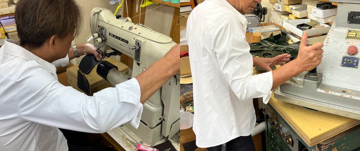 生産は20年以上お付き合いさせていただいている、大阪の革小物専門工場で生産。川の選定から裁断、縫製、仕上げと全ての工程を職人さん達が行い、自社工場にて責任を持って生産していただいているので、とても信頼のおける工場様です。