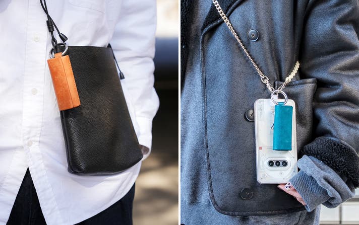 小さなバッグやスマホショルダーにとりつけて