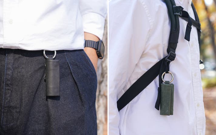 - 鍵も現金も一緒に持ち歩く。身の回りに取り付けれる手ぶら財布