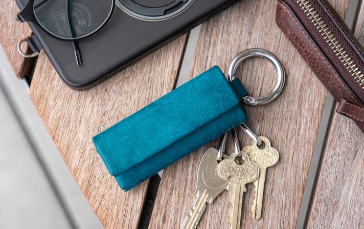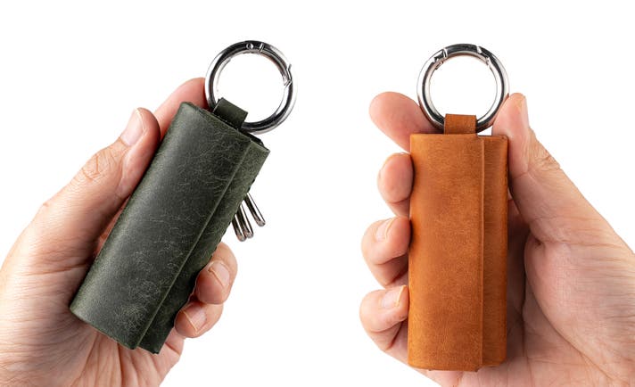 キーホルダー金具は3個付属しており、自宅の鍵や車のスマートキーケースを取り付けることが可能です。