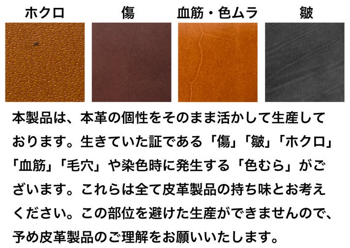 本プロジェクトに使用しているイタリアレザーのMARGOはスクラッチ加工が施されており、表面は若干起毛しております。通常仕上げの革に比べて色移りがしやすくなっておりますので、白色や淡い色のシャツの胸ポケット、バッグのなどと一緒に使用する際は十分にご注意ください。