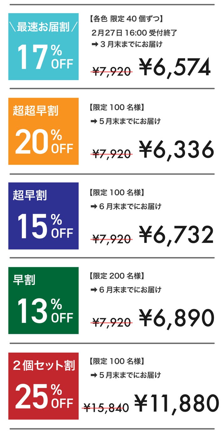【超早割】15%OFF お好きな色を1個〈100名様限定〉