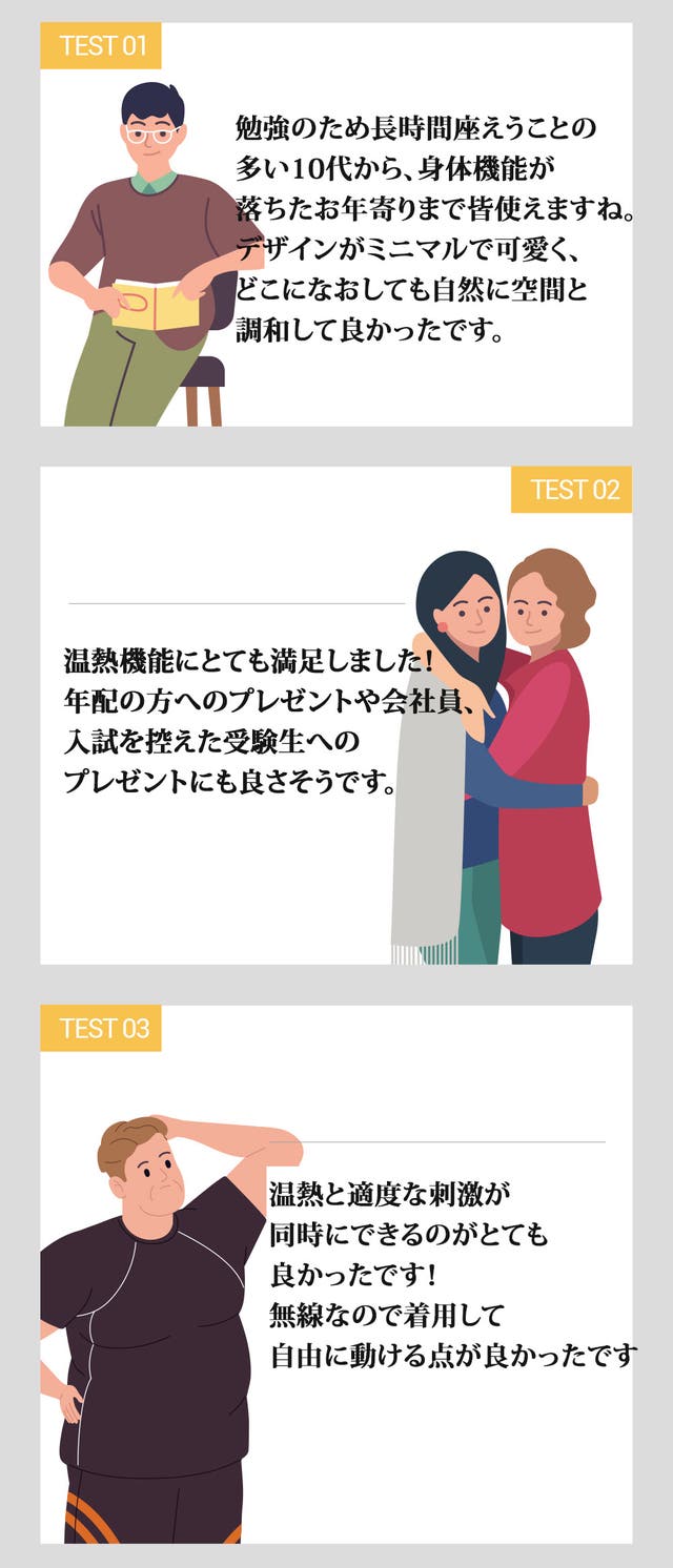A:日常生活のどんな姿勢でもご使用いただけます。家事、仕事、散歩をしながらも使えますし、椅子にもたれかかったりベッドに横になった状態でも使用可能です。