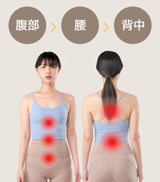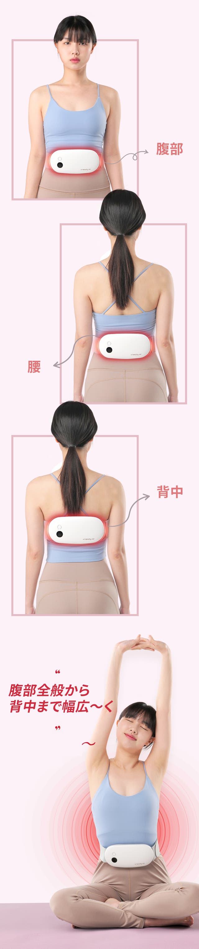 - 空気圧でやさしく、腹部全般から背中まで、気持ちよく圧迫してみてください。