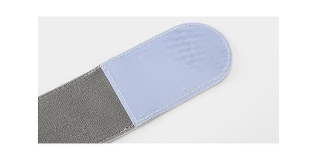 ベルト部分に伸縮性、弾力性、回復力に優れたライクラを使用し、フィット感を高めました。何度も着用(洗濯)しても形態変形することなく形が維持される特徴があり、着用時に安定感を持って密着します。ライクラと一緒に面ファスナーで再度固定し、体にぴったり合うように使用することができます。