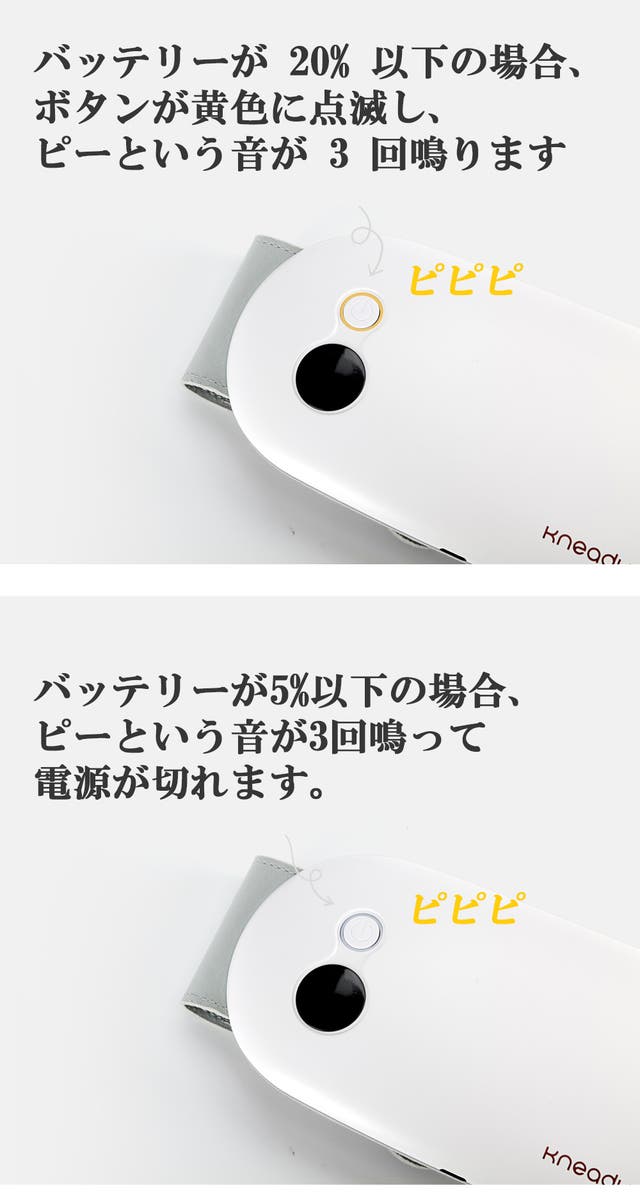 TIP | バッテリーが足りない場合、空気圧が弱くなったように感じることがあります。何度かお使いになってニディエアの空気圧が最初より弱くなったと感じたら、バッテリーを完全に充電してからもう一度お試しください。 最初のように柔らかいですが、強い空気圧を感じることができるかと思います。