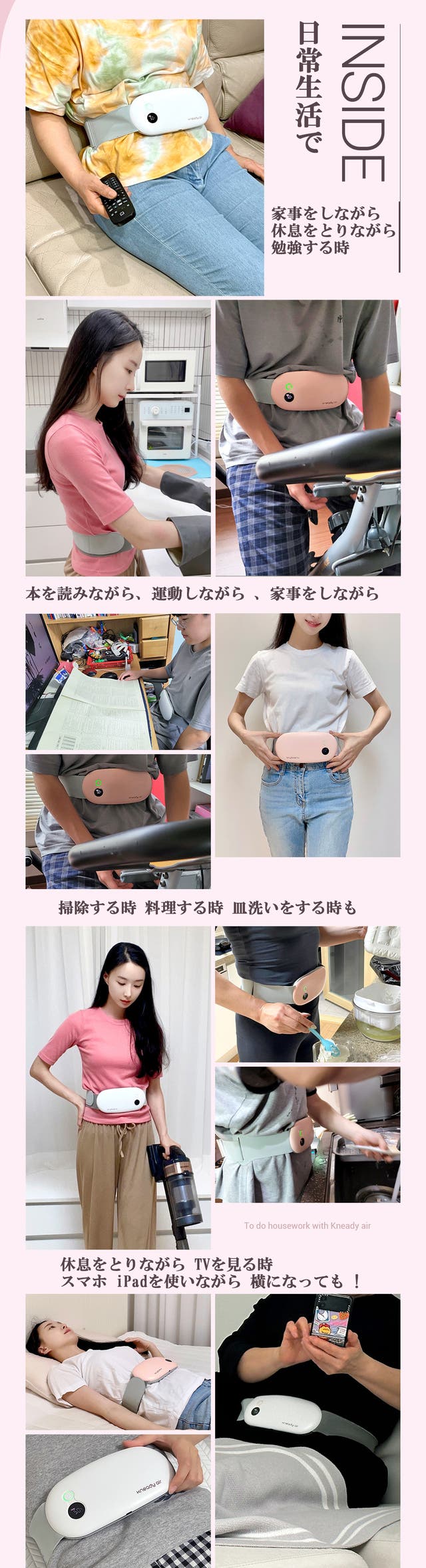 「邪魔な線がないからより自由!」 いつでも!どこでも!腹部、腰、背中に柔らかい圧迫が必要なときは、ニディエアをお試しください!