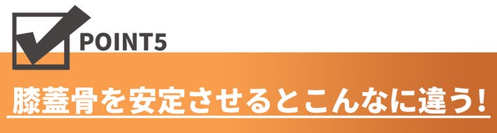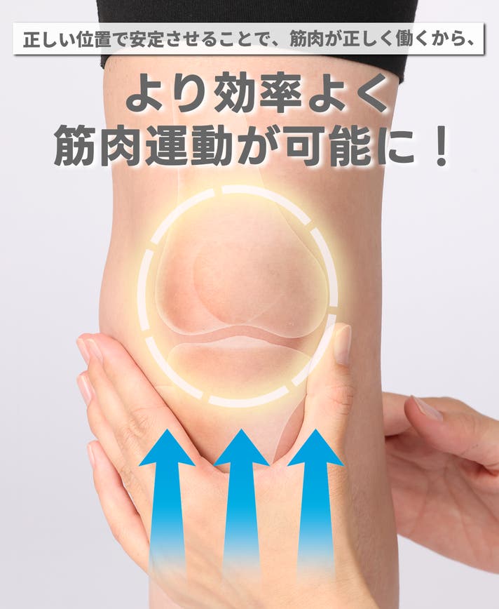 膝(ひざ)の皿といわれる、膝蓋骨(しつがいこつ) を支え、正しい位置でしっかり安定させることで、膝(ひざ)関節に関わる重要な筋肉を正しく使えるようになります。