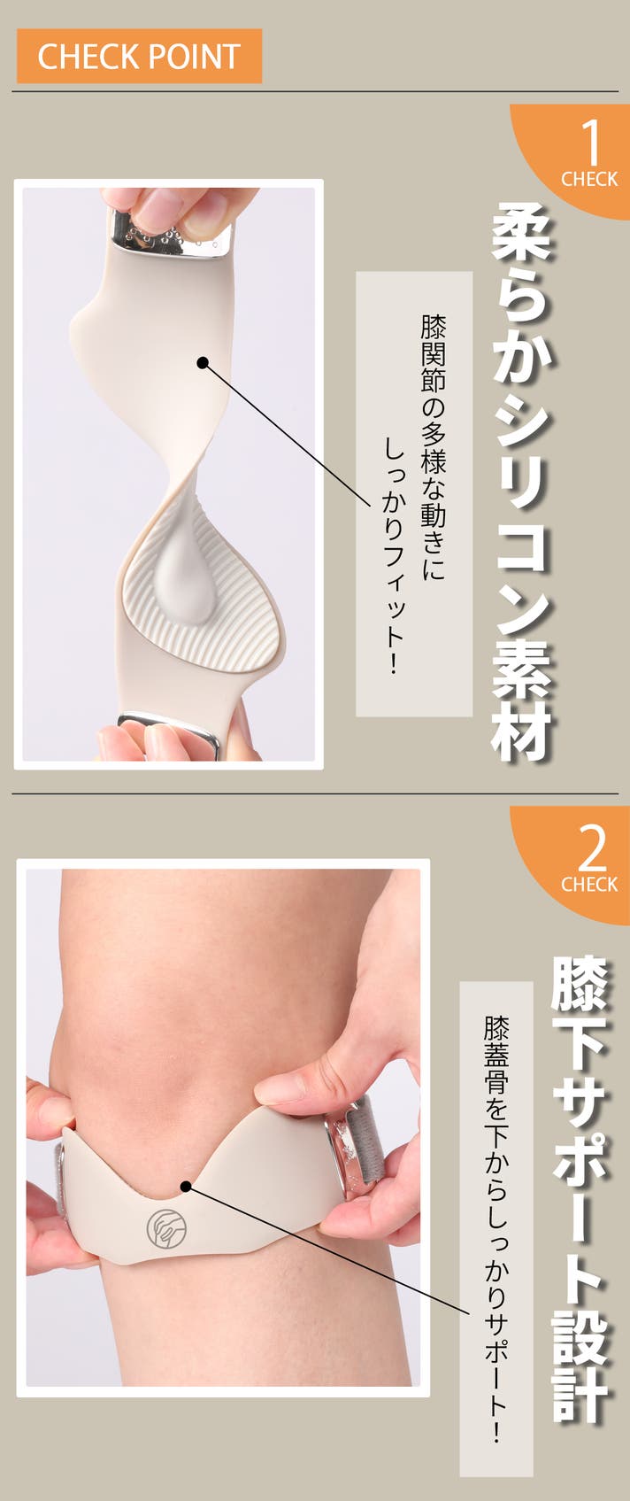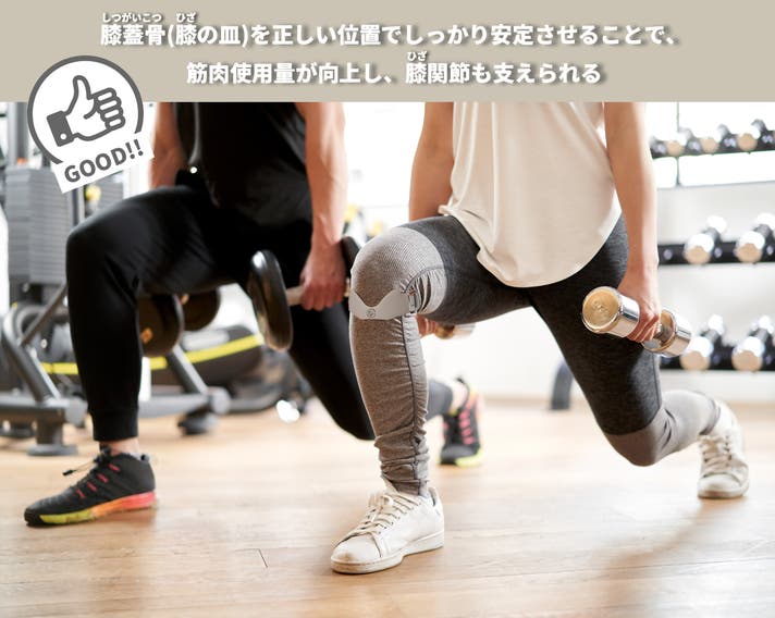 - 膝の皿(膝蓋骨)のブレを抑え、筋肉を効率的にサポート!