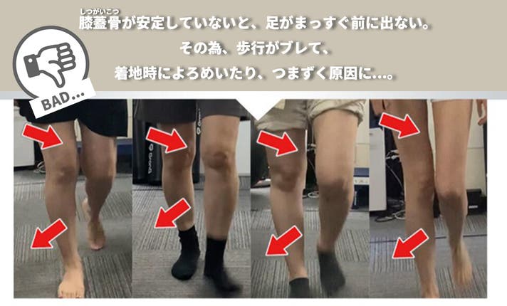 膝蓋骨が安定されていないと、筋肉の力が正しく伝わらず、筋肉使用量が減り、運動効率を下げてしまうことになります。