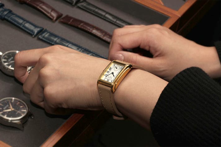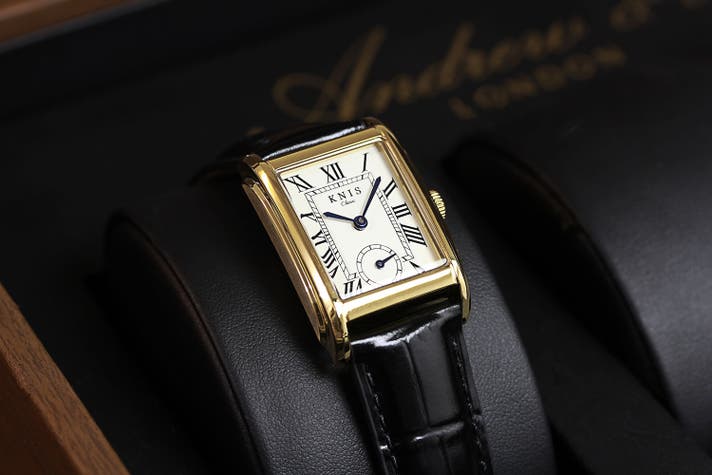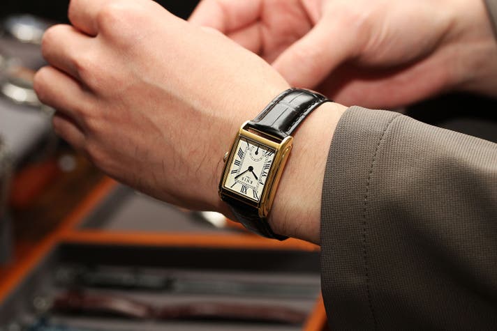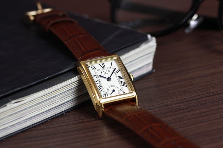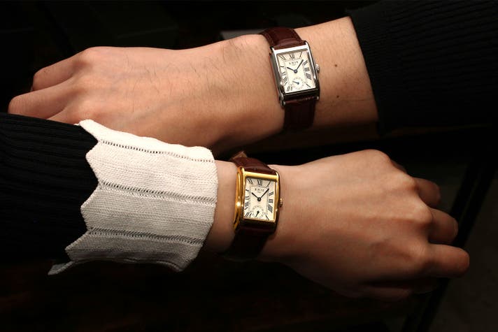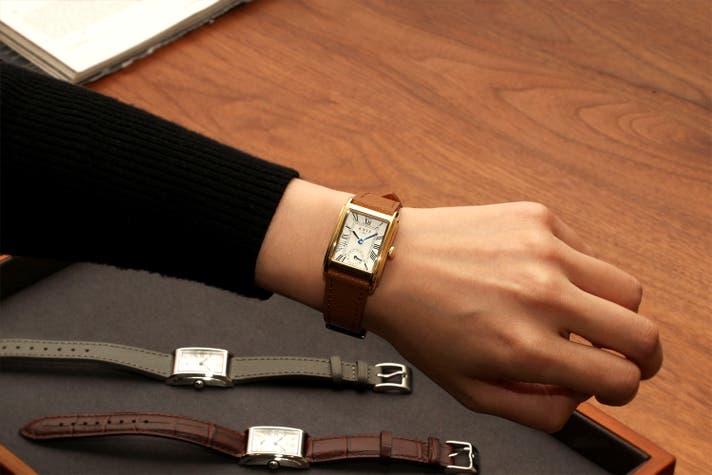 この時代に、伝統的な丸型時計とは一線を画すレクタンギュラー型(長方形)の腕時計が登場します。