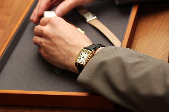 丸型の時計が“やわらかさ”や“安定”を連想させるのに対し、レクタンギュラーはシャープさと知性、洗練された雰囲気を生み出します。