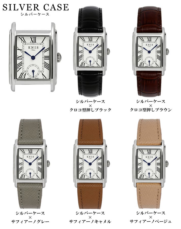 ・KNIS 日本製レクタンギュラー腕時計 シルバー×1本