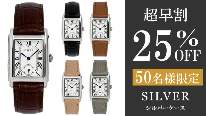 【超早割 25%OFF】50本限定!レクタンギュラー腕時計 シルバー