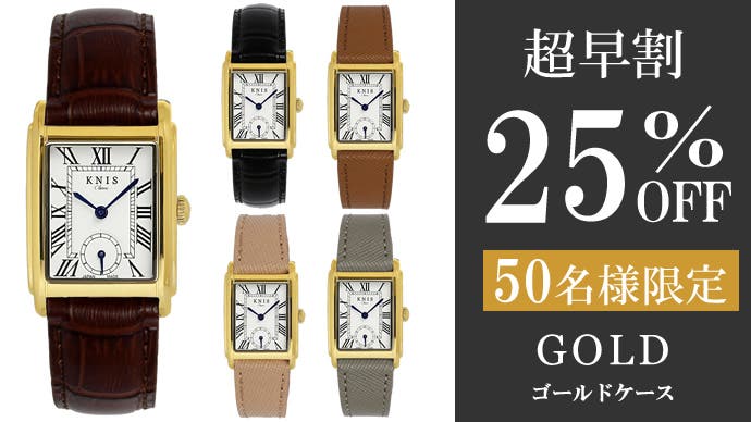 【超早割 25%OFF】50本限定!レクタンギュラー腕時計 ゴールド