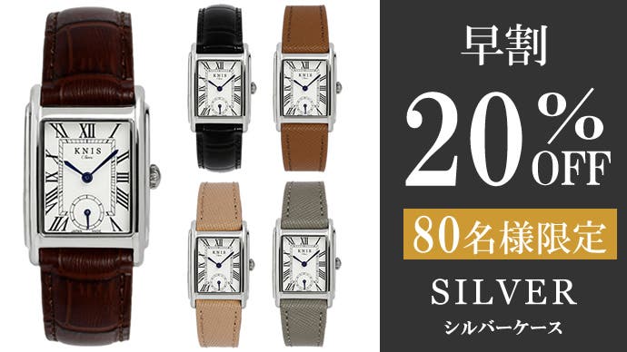 【早割 20%OFF】80本限定!レクタンギュラー腕時計 シルバー