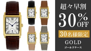 【超々早割 30%OFF】30本限定!レクタンギュラー腕時計 ゴールド
