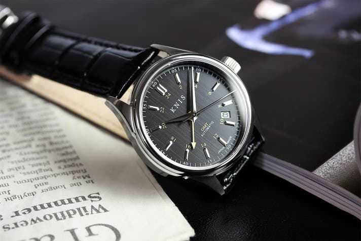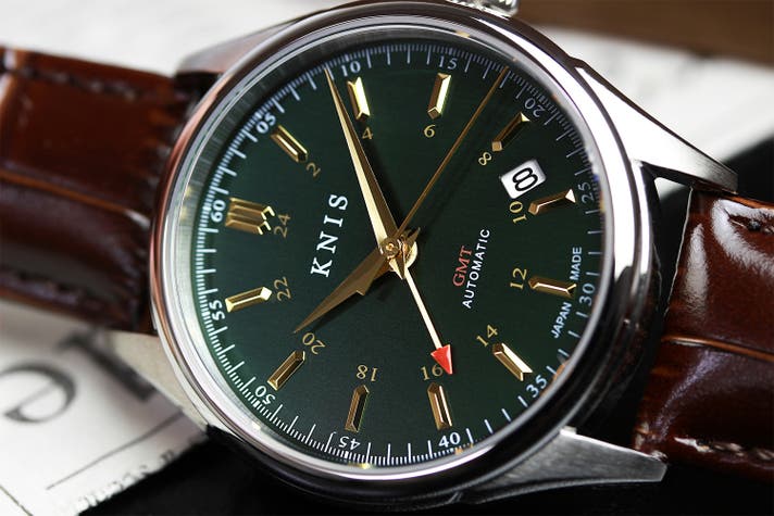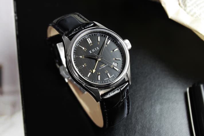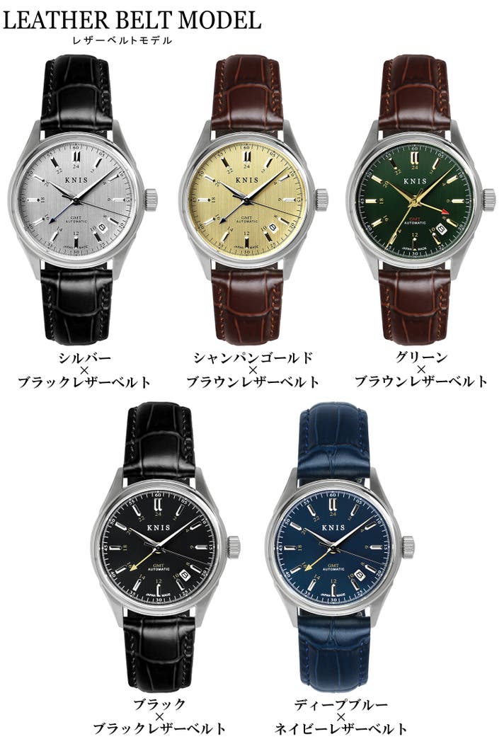 ・KNIS 日本製 クラシックGMT 腕時計 レザーベルトモデル×1本