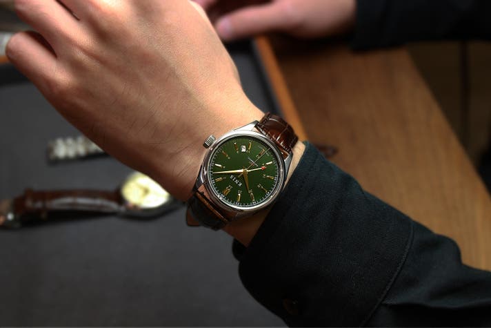 日本人の腕に合うサイズ感にこだわり、直径38mmのケースにしました。