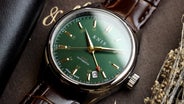 クラシックな丸型デザインを採用し、シンプルでありながら立体的な砲弾型インデックスとドルフィン針を備えることで、視認性を極限まで高めたドレスウォッチです。さらにGMT機能を搭載し、2つの異なるタイムゾーンを同時に確認できるため、ビジネスや海外旅行でも実用性を発揮します。1930年代以降に誕生したクラシックデザインの精神を受け継ぎ、「完成されたドレスウォッチ」の美学を現代に表現しています。