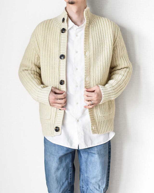 大人メンズファッションの定番とも言える“スタンドカラー ニットカーディガン”。
