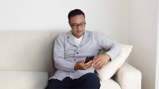 自宅でゆっくりくつろげる着心地は在宅勤務でも活躍します。オンライン会議ではこの通り、キチンと感で好印象。お取引先や上席とのミーティングにも対応します。