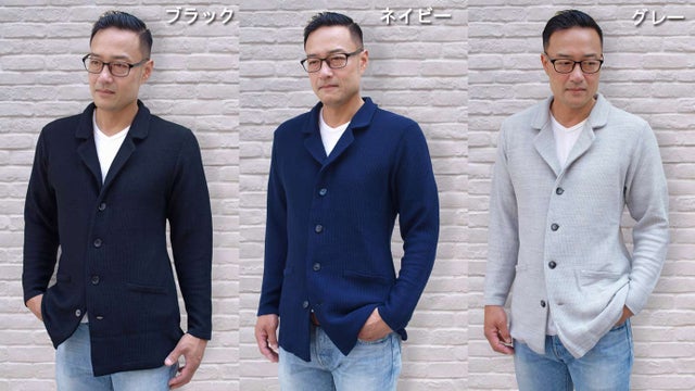 まず、これらを果たすためにの基本デザインの検討から始めました。この時世、外出時はもちろん、お家の中でも使え、それでいてキチンと感も出せるデザイン。そこでたどり着いたのが、『メンズのアンサンブル』でした。更に聞き取りで調査で女性には多いアンサンブルニット、男性デザインはあまり見かけないことが判明。そこで便利でお洒落なニットアンサンブルを企画いたしました。