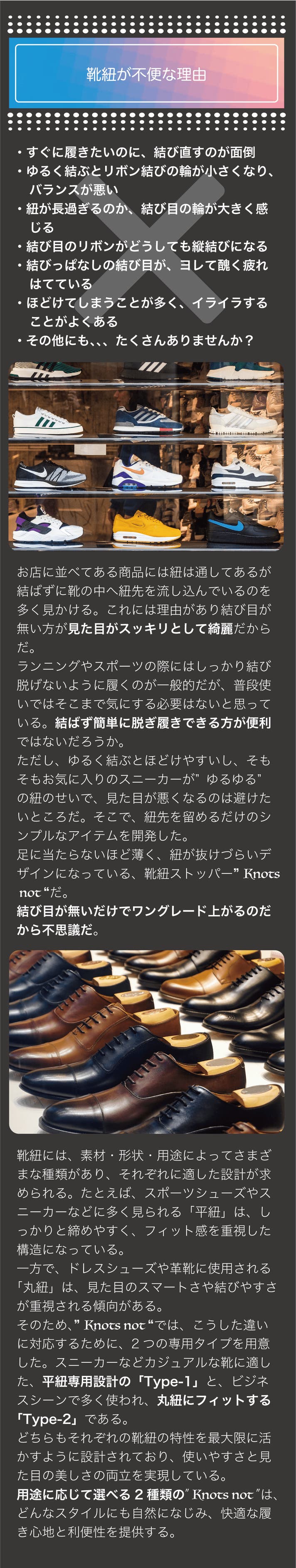「Knots not」は、お客様の靴とともに一生涯を共にするパートナーとなります。
