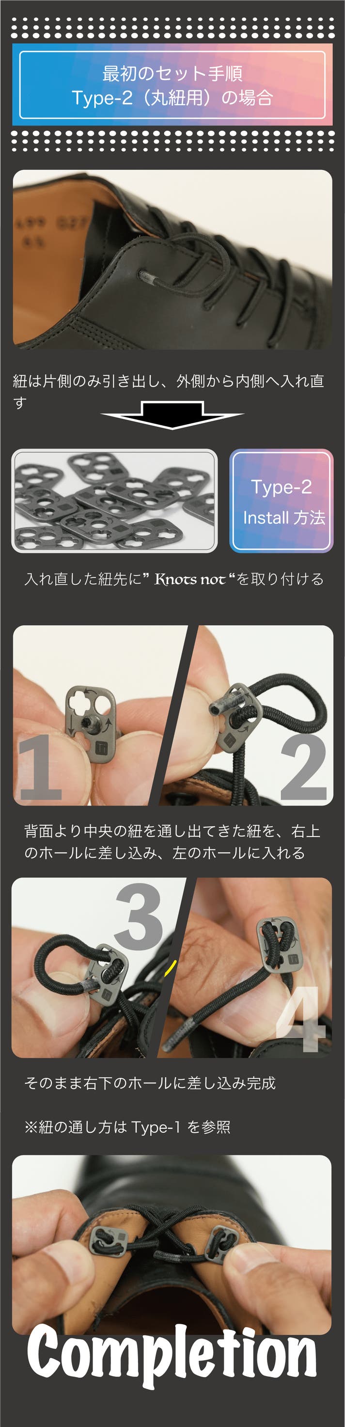・Type-2のまる紐用を選んだ数量と同数のゴム製靴紐が付きます。