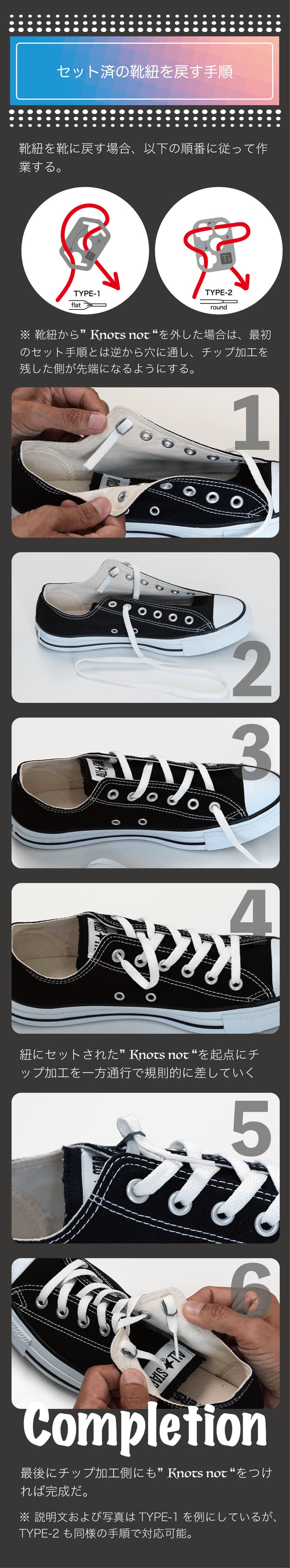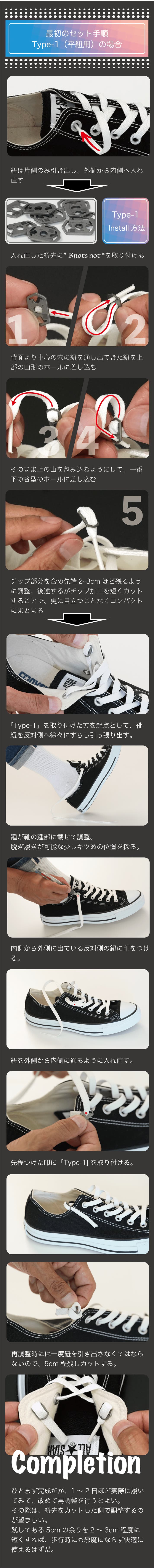 最後になりますが、Type-1とType-2への靴紐の通し方を動画解説致しましたので、合わせてご視聴ください。