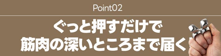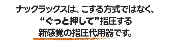 ナックラックスは、一般的な握力では届きにくい筋肉の深部にまでアプローチ。 しっかりとした圧でこわばった筋肉をやさしく刺激し、筋肉のこりをほぐします。