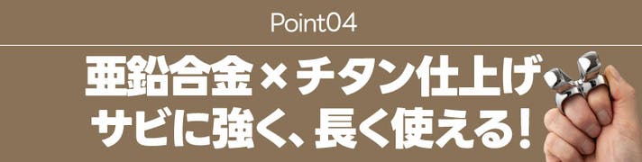 - 亜鉛合金×チタン仕上げ。サビに強く、長く使える高耐久設計