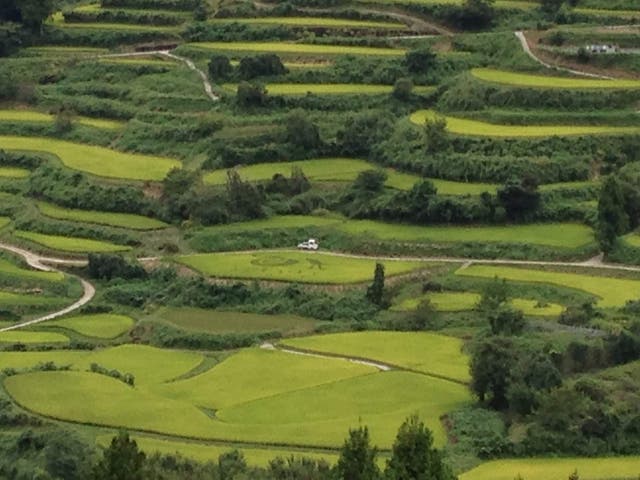 棚田の米粉を餡に入れているのは、つなぎとして、しっとり効果を発揮させるため。天空の棚田とも言われる嶺北の棚田は、おいしいお米の産地なんですよ。