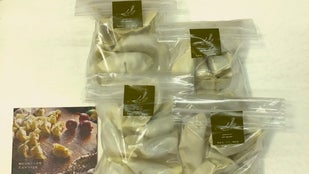 工程の最後に、一つ一つ手包みしたら完成。生餃子をすぐに急速冷凍するのは、新鮮な具材のおいしさを、そのままギュッと閉じ込めるためです。