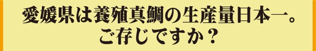 愛媛県は、養殖真鯛の生産量日本一。全国シェアの50%以上を誇っています(2021年、出典:厚生労働省「令和3年度漁業生産高統計表」)。しかしながら、この事実をご存じの方は少ないでしょう。