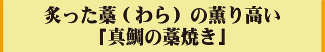 真鯛の旨味と藁焼きの香ばしさをお楽しみいただくため、軽く塩味のみつけて焼き上げております。