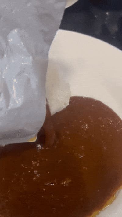 この最初に出てくる金色のオイルこそ弊社の神戸牛の旨みがたっぷり含まれたビーフオイルの証です。