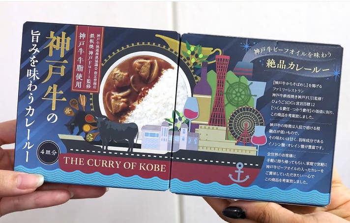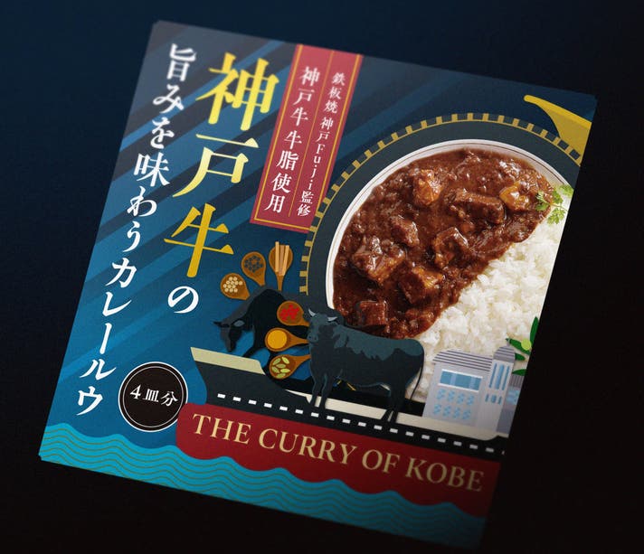 パッケージは神戸のデザイナー神戸人氏に依頼。港町神戸から世界に羽ばたく神戸牛のカレーをイメージ。2箱組み合わせる事で両面で一つの絵柄が完成するギミックも内包しております。また神戸セレクション2026年度にこの神戸牛の旨みを味わうカレールーが採択されました。
