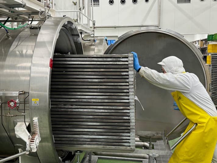 実は、オイルに旨みを出し切った後のこの肉片に旨みが凝縮されています。これをレトルト加工(真空加圧加熱加工)することで、圧倒的な深みと、濃厚なコクが生まれました。