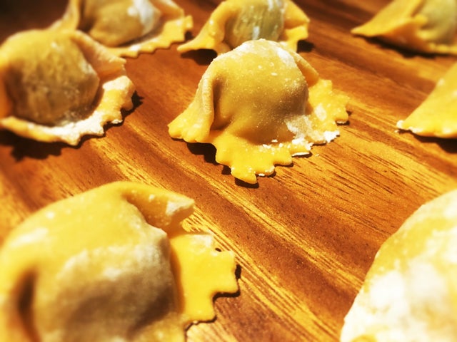 可愛い形の「アニョロッティ・ダル・プリン」と言う名前のラビオリ。