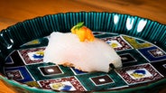 コースの中に、中トロやウニの軍艦など江戸前鮨の定番が並ぶほか、イカの中にウニを詰めるなど、遊び心をきかせた握りも登場。