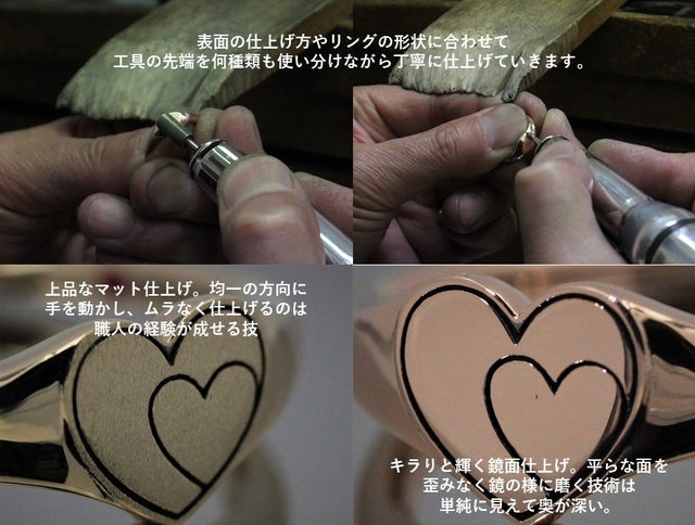 身に着けて頂く方の事を想い描き、細部まで丁寧に仕上げていきます。指に馴染む着け心地の良さも、内側を抜きすぎると実現しません。想いが届きますように。