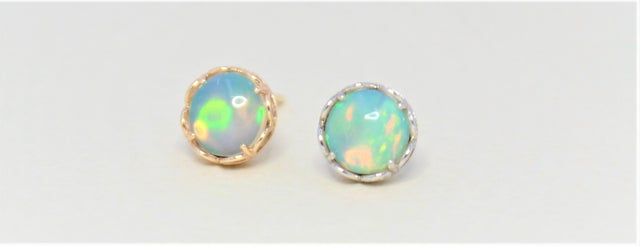 遊色が美しいエチオピアオパールのピアス(片耳)です。地金素材はK10イエローゴールドとK10ホワイトゴールドの2種類からお選びいただけます。