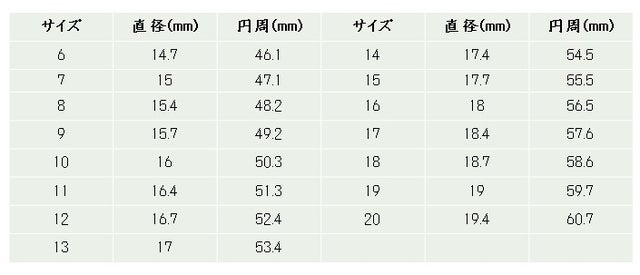 リングサイズは6号~20号からお選びください。