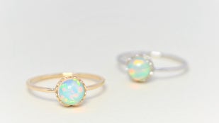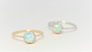 希少なハイアライトオパールのリングです。強い紫外線を当てると鮮やかな黄緑色に蛍光します。地金素材はK10イエローゴールドとK10ホワイトゴールドの2種類からお選びいただけます。