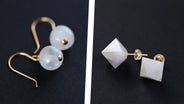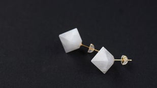 3,山梨にある乙女鉱山で採れた水晶で作られるダイヤモンドラフカットのデザインをしたピアス