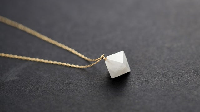 ダイヤの原石も、こういったひし形で産出されることがあります。そんなダイヤカットをモチーフにしたシンプルなペンダントネックレスです。