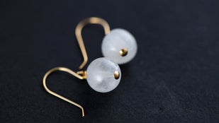 1,山梨にある乙女鉱山で採れた水晶で作られる丸玉ピアス(約8mm)